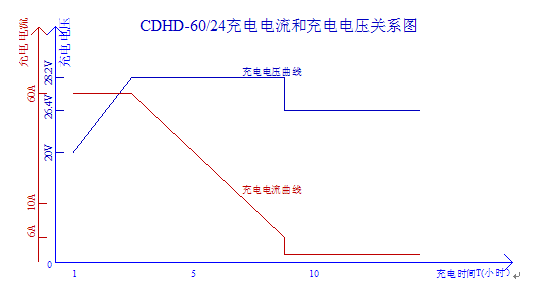 以24V鉛酸蓄電池為例,過程是:接好電池,開啟后,充電電源軟啟動(dòng),電壓從21.6V(電池放電下限值)開始上升,充電電流逐步增大到額定恒流值,充電電源進(jìn)入恒流充電過程,此后充電電壓逐漸升至28.2V(均充電壓值),此恒流充電過程一般情況下約需1~2小時(shí);然后,充電電源進(jìn)入均衡充電過程,在此過程中,充電電流逐漸緩慢下降,電源退出恒流工作,此時(shí)電源電壓不變,進(jìn)入到恒壓均衡充電狀態(tài),此充電過程約需4~6小時(shí),隨著電流的進(jìn)一步減小到額定電流的十分之一時(shí),電源自動(dòng)判斷為電池已充好,電源自動(dòng)轉(zhuǎn)為浮充階段,即輸出電壓將為26.4V,充電電流則進(jìn)一步減小甚至為零,在沒有外部變化情況下,此后電源一直維持這種狀態(tài),補(bǔ)充電池的自耗電。采用這種充電方式能夠較快、均衡的對(duì)電池組進(jìn)行充電,充滿后充電電源能自動(dòng)轉(zhuǎn)換到浮充,維持電池正常電壓避免出現(xiàn)電池過充,從而實(shí)現(xiàn)無人值守充電工作方式。